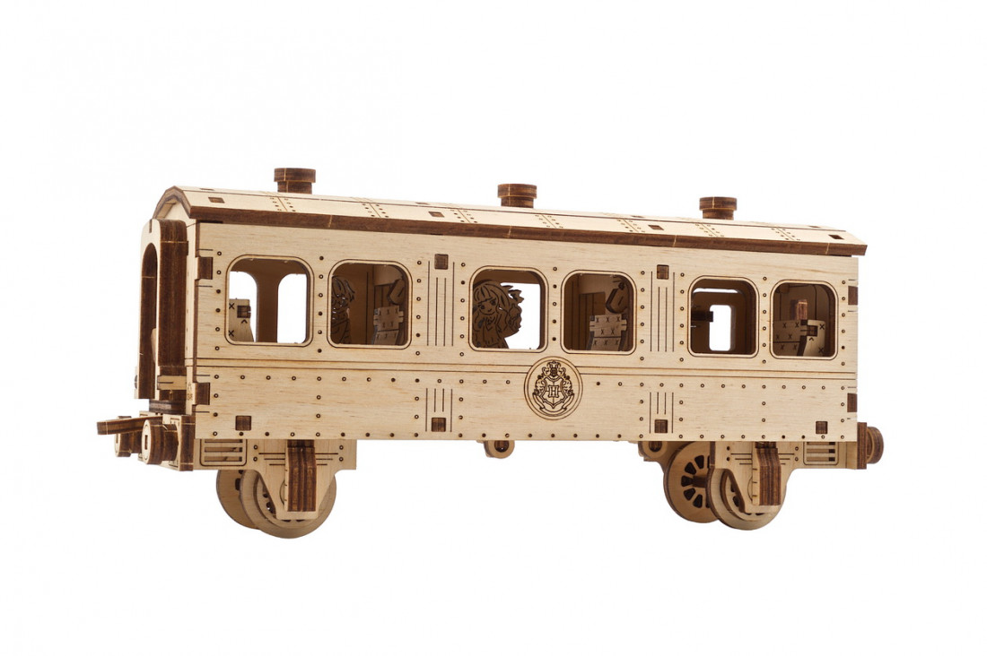 Adéntrese en el Mundo de la Magia y encuéntrese con Harry, Hermione y Ron en un fascinante viaje a bordo del Expreso de HogwartsTM, con esta especial maqueta de tren de Ugears que realmente funciona. Esta maravillosa maqueta de tren de madera, que sale de la estación londinense de King’s Cross con destino a la estación de Hogsmeade cerca del Castillo de Hogwarts, tiene una locomotora propulsada por un resorte, un ténder-carbonero así como un vagón de pasajeros, donde se ven los jóvenes héroes de la magia de camino al colegio. Dele cuerda a la maqueta con la llave especial, gire el interruptor de arranque/parada en forma de chimenea, y después observe el fascinante movimiento de los engranajes, las ruedas y las bielas de acoplamiento cuando la locomotora sale dando resoplidos. En superficies lisas y planas, el Expreso de HogwartsTM de Ugears puede recorrer 4 metros (con ténder y vagón) o 6 metros (solamente la locomotora). Con la sección de raíles y la topera del andén nueve y tres cuartos incluidas, este maravilloso modelo 3D de madera también es un elegante elemento decorativo.