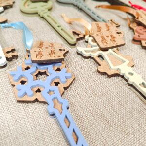 Cada llave está cuidadosamente trabajada, con un diseño encantador y resistente, pensada para convertirse en un recuerdo navideño que los pequeños guardarán con cariño